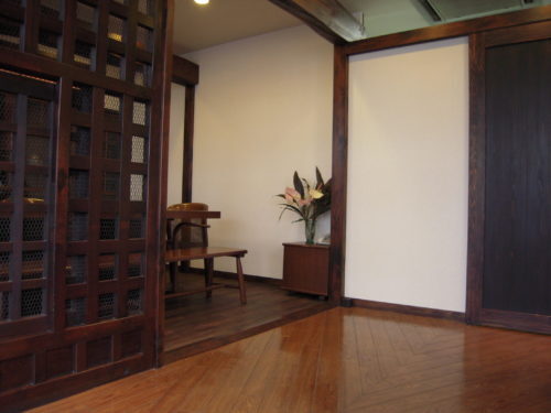 ショールーム Please come visit 弊社オフィス内に、古材を使ったショールームを開設しています。「大人のリビングルーム」をイメージした昭和モダンのデザインで、古材、無垢の木、昭和建具、蔵戸などを使った上質な空間を演出しております。ぜひお客様のリフォームプランのご参考になさってみてください。実際にこのスペースにてお打合せ・商談も可能です。どなたでもご覧いただけますので、ぜひお気軽にお越し下さい。(日曜・祝祭日はお休みさせて頂きます)